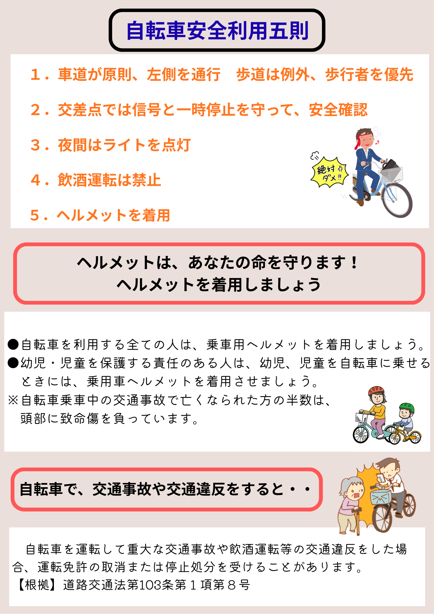 自転車は、道路交通法上、軽車両に位置付けされており、「車のなかま」です。